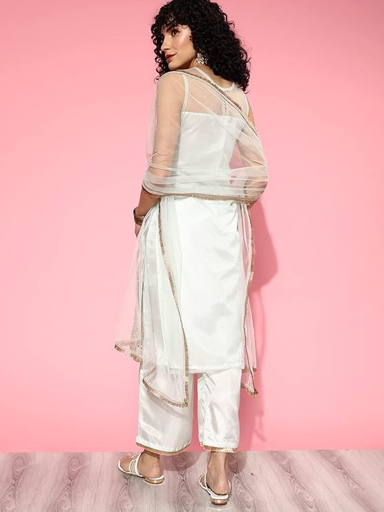 Elegant and Perfect Fit! This outfit is absolutely gorgeous! The floral embroidery on the net fabric is delicate and stylish. The blue color is vibrant, and the fit is perfect—comfortable yet flattering. The pant and dupatta complete the look beautifully. Great for festive occasions or parties. Loved it!