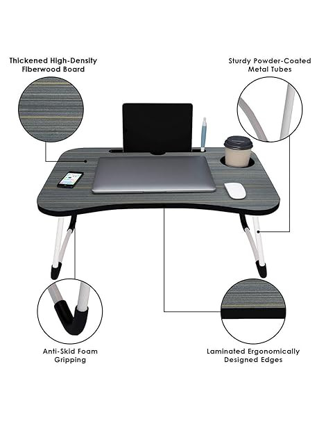 Compact, Sturdy, and Super Convenient! This foldable laptop table is a game-changer! It’s lightweight yet sturdy, and the cup holder is a nice touch. Perfect for working on the bed or sofa, and it easily folds away for storage. Great for studying, meals, or casual work—totally worth it!