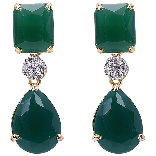Beautiful and Eye-Catching! These earrings are absolutely stunning! The gold plating with green, red, blue, and white stones looks elegant and vibrant. They’re lightweight, comfortable to wear, and perfect for parties or festive occasions. Got lots of compliments—totally worth it!